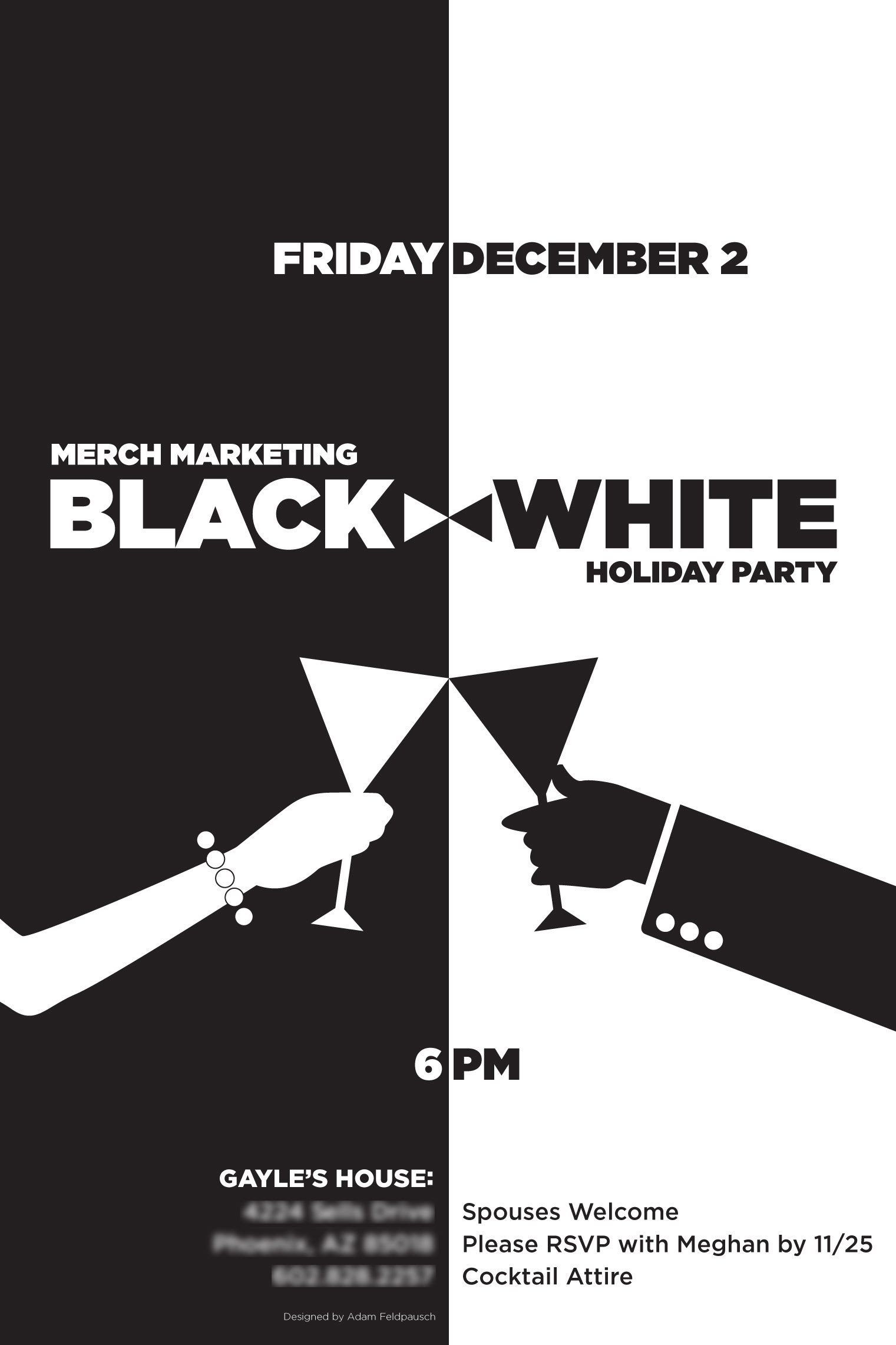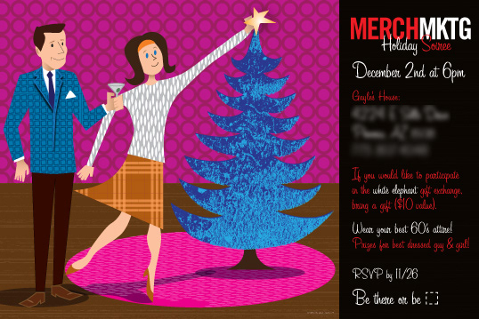 MerchMktg Holiday Soiree invitation, inspired by the 60's world of Mad Men.