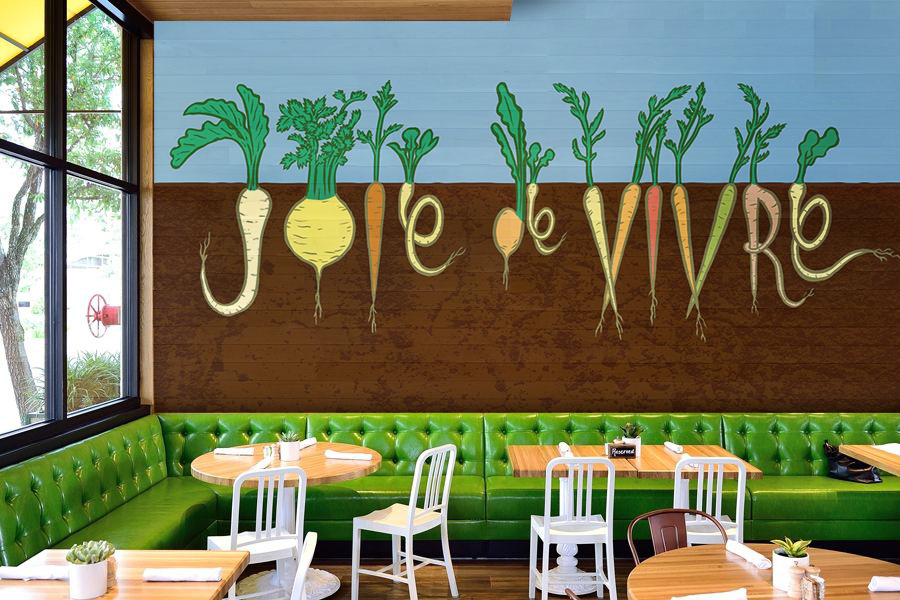 I created two mural concepts for True Food Kitchen, a restaurant that specializes in sustainable, fresh, local produce. The intent was to make them earthy and playful.